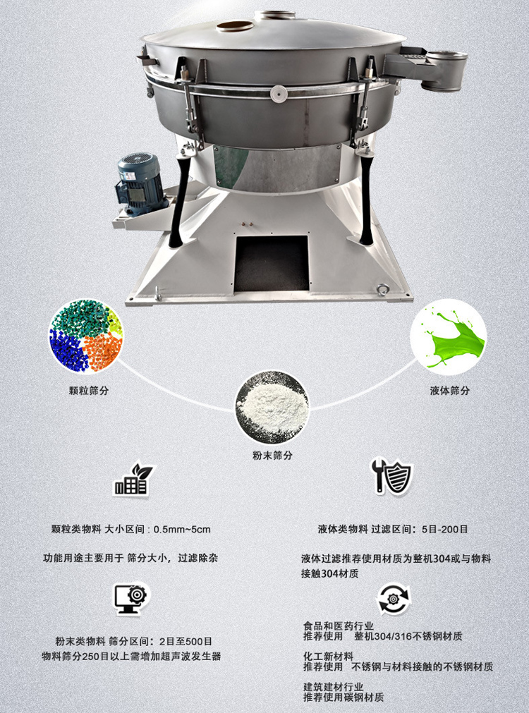 304不銹鋼材質(zhì),篩機(jī)外形光潔美觀,無毛刺,是為了滿足大產(chǎn)量、高精度的篩分要求而特殊設(shè)計(jì)的一種多用途新型篩分機(jī)械設(shè)備,其充分模擬了人工篩分的原理,篩分精度可達(dá)到95%以上,處理量是普通篩機(jī)的3-5倍,篩網(wǎng)使用壽命也是常規(guī)篩分設(shè)備的5-10倍,適用于精細(xì)和超精細(xì)粉末與微粒物料的篩分,特別適合難處理、高產(chǎn)量的篩分工藝。